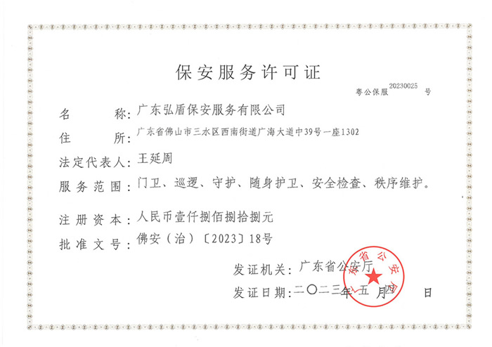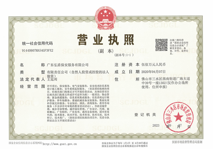 • 弘盾保安總公司營業(yè)執(zhí)照