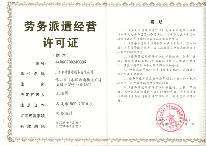 • 勞務(wù)派遣經(jīng)營許可證